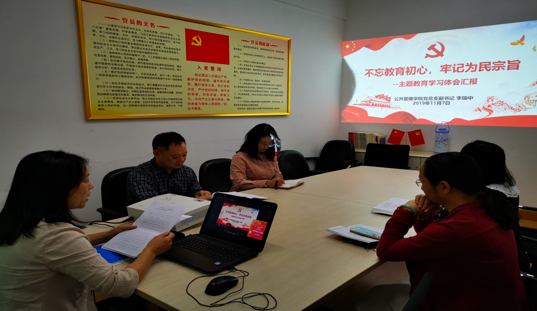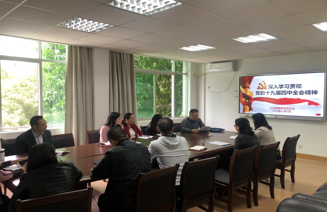 11月7日上午,公共管理学院党总支在左海校区思政教研室召开全体党员会议,集中学习党的十九届四中全会精神。学院党总支书记罗向阳主持会议,学院在岗党员参加了本次会议。