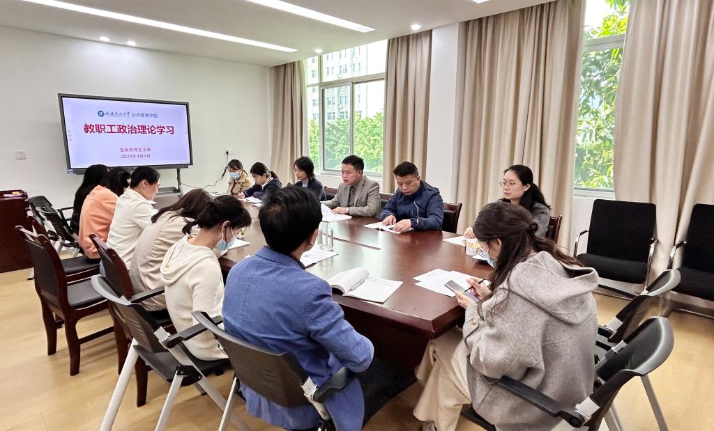 4月10日下午,学院党政管理党支部组织开展4月第一次教职工政治理论学习。会议由支部书记廖雪峰主持,支部全体党员、学院所有行政岗非党员同志参加。会议集中学习了习近平总书记在全国两会期间的重要讲话和全国两会精神,《中国共产党党员网络行为规定》精神、《时刻保持解决大党独有难题的清醒和坚定,把党的伟大自我革命进行到底》、《必须坚持人民至上》重要文章精神、《总体国家安全观学习纲要》等内容。