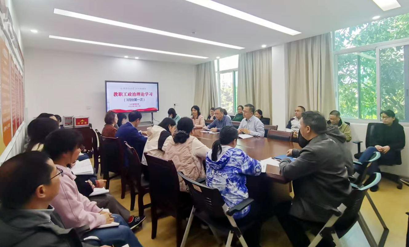 3 月 11 日(周二)下午,学院全体教职工在左海校区向新楼412会议室开展3月份教职工政治理论学习及交流研讨。本次学习由学院党总支书记黄庆安主持,学院全体教职工参加。