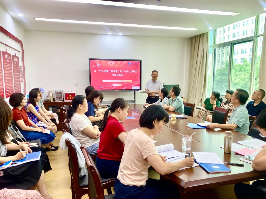 为扎实开展深入贯彻中央八项规定精神学习教育,引导全院教职工传承红色基因、强化纪律意识、筑牢作风根基,6月17日下午,学院党总支书记、院长黄庆安为学院全体教职工讲授了一堂主题鲜明、内涵深刻的专题党课。党课以“从‘三大纪律八项注意’到‘中央八项规定’:传承与革新”为题,系统回顾了党的纪律建设光辉历程,深刻阐释了新时代加强纪律建设的重大意义与实践要求。