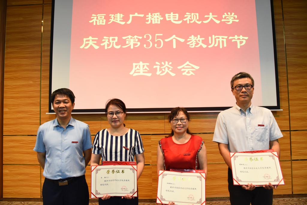 向学院汪继红老师(左三)颁发国家开放大学优秀教师证书