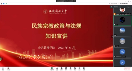 6月29日,学院学生党员E支部利用腾讯会议开展民族宗教政策与法规知识宣讲,学生党员E支部组织委员韩玲玲向师生宣传习近平总书记关于宗教工作的重要论述和重要指示批示精神,党的宗教工作基本方针和宗教政策。她强调了大学生宗教活动六不准,希望全体学生不断筑牢思想防线,自觉抵制非法宗教组织的渗透传播,树立科学的世界观、人生观和价值观。