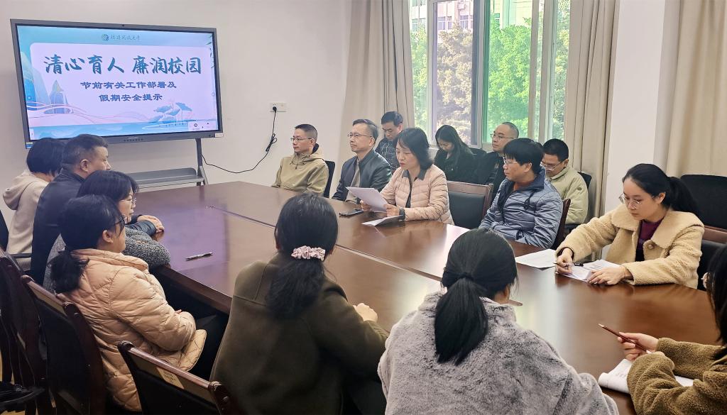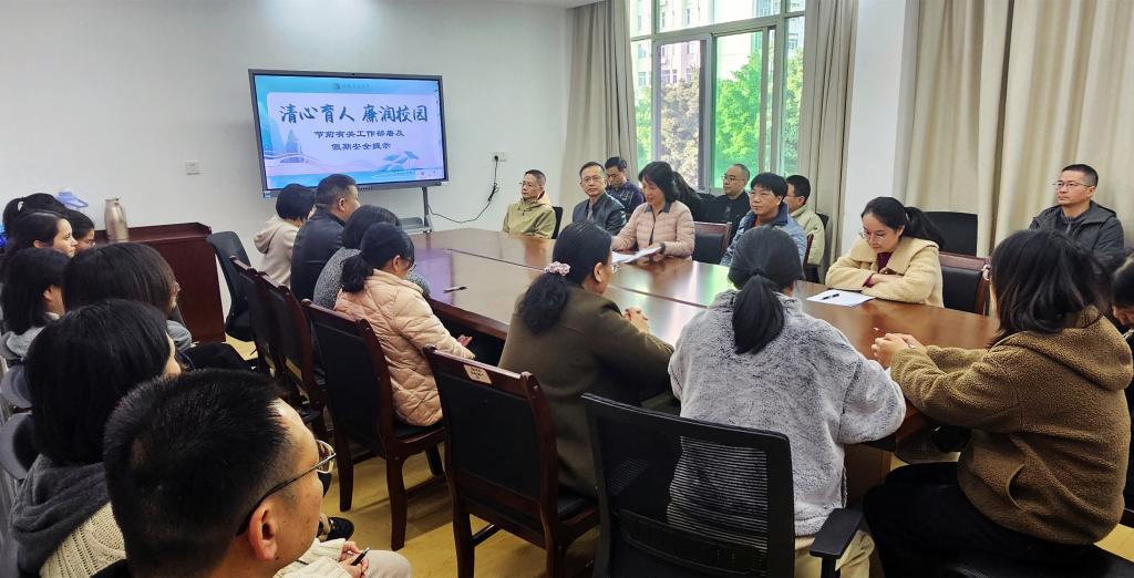 元旦、春节将至,为深化落实中央八项规定精神,加强重要节点警示教育,强化正风肃纪,营造风清气正节日氛围,12月31日下午,学院在412会议室召开节前作风建设暨廉政教育专题会,学院全体教职员工参加会议。